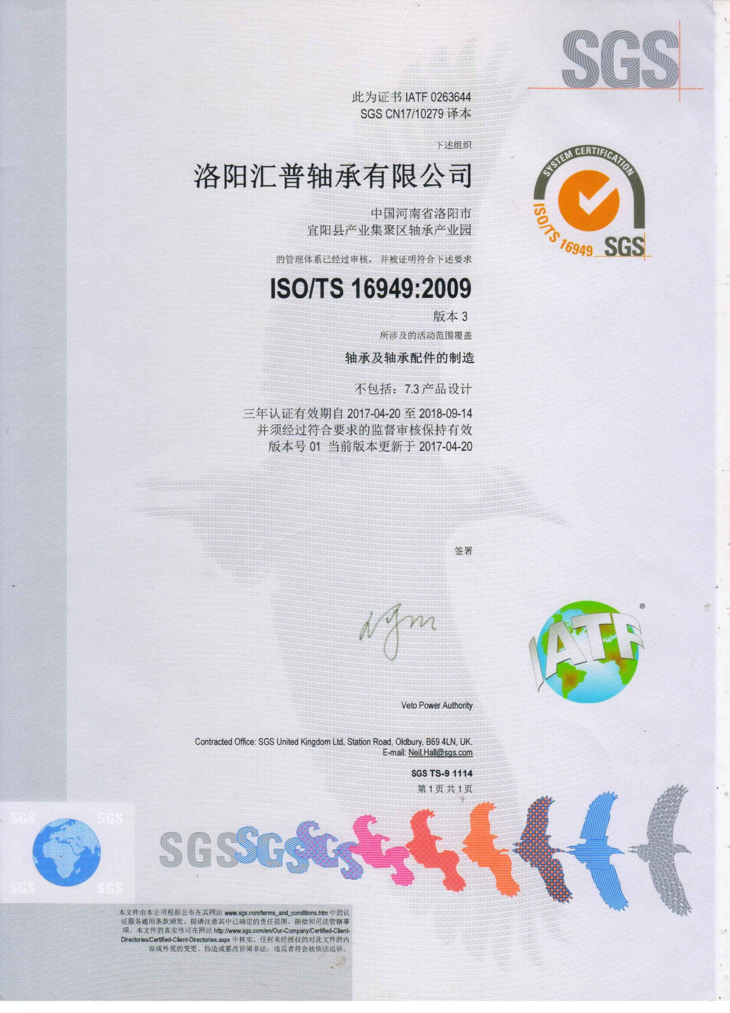 2017年4月匯普軸承順利通過TS16949質(zhì)量體系認證